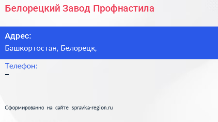 Белорецкий Завод Профнастила по адресу Башкортостан, Белорецк, в дальнейшем Организация, размещена в следующих категориях: