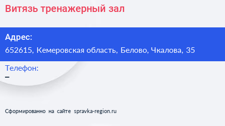 Витязь, тренажерный зал по адресу 652615, Кемеровская область, Белово, Чкалова, 35 в дальнейшем Организация, размещена в следующих категориях: