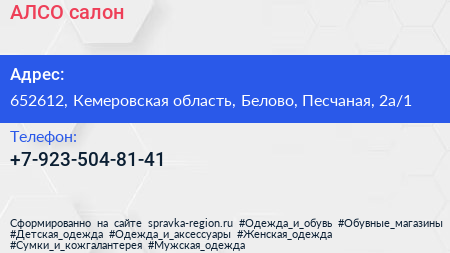 АЛСО, салон по адресу 652612, Кемеровская область, Белово, Песчаная, 2а/1 в дальнейшем Организация, размещена в следующих категориях: