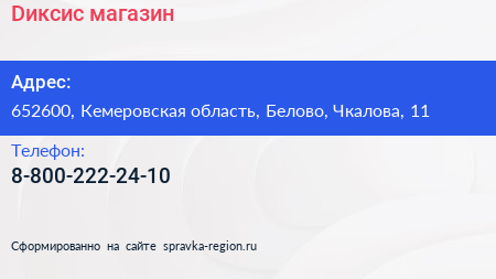 Dиксис, магазин по адресу 652600, Кемеровская область, Белово, Чкалова, 11 в дальнейшем Организация, размещена в следующих категориях: