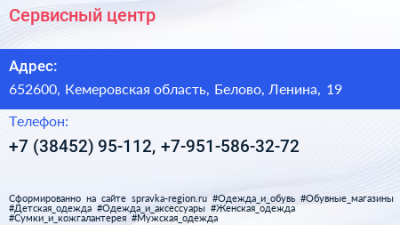 Сервисный центр по адресу 652600, Кемеровская область, Белово, Ленина, 19 в дальнейшем Организация, размещена в следующих категориях: