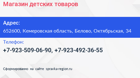 Магазин детских товаров по адресу 652600, Кемеровская область, Белово, Октябрьская, 34 в дальнейшем Организация, размещена в следующих категориях: