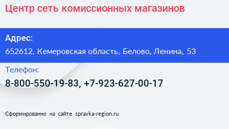 Центр, сеть комиссионных магазинов по адресу 652612, Кемеровская область, Белово, Ленина, 53 в дальнейшем Организация, размещена в следующих категориях: