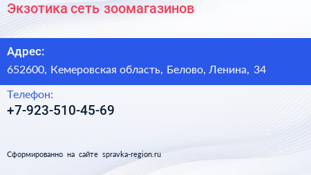 Экзотика, сеть зоомагазинов по адресу 652600, Кемеровская область, Белово, Ленина, 34 в дальнейшем Организация, размещена в следующих категориях: