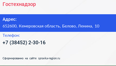 Гостехнадзор по адресу 652600, Кемеровская область, Белово, Ленина, 10 в дальнейшем Организация, размещена в следующих категориях:
