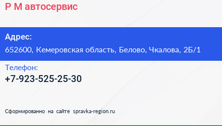 P & M, автосервис по адресу 652600, Кемеровская область, Белово, Чкалова, 2Б/1 в дальнейшем Организация, размещена в следующих категориях: