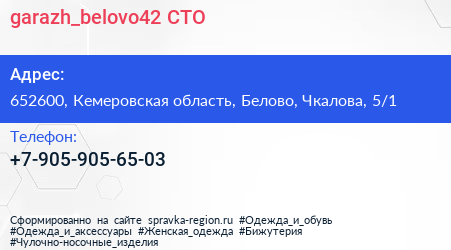 garazh_belovo42, СТО по адресу 652600, Кемеровская область, Белово, Чкалова, 5/1 в дальнейшем Организация, размещена в следующих категориях: