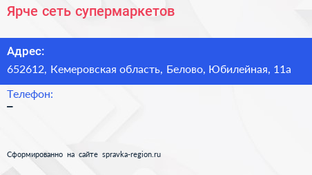 Ярче!, сеть супермаркетов по адресу 652612, Кемеровская область, Белово, Юбилейная, 11а в дальнейшем Организация, размещена в следующих категориях: