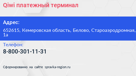 Qiwi, платежный терминал по адресу 652615, Кемеровская область, Белово, Староаэродромная, 1а в дальнейшем Организация, размещена в следующих категориях: