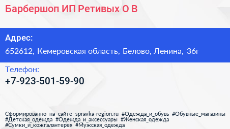 Барбершоп, ИП Ретивых О.В. по адресу 652612, Кемеровская область, Белово, Ленина, 36г в дальнейшем Организация, размещена в следующих категориях: