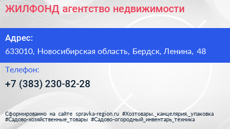 ЖИЛФОНД, агентство недвижимости по адресу 633010, Новосибирская область, Бердск, Ленина, 48 в дальнейшем Организация, размещена в следующих категориях: