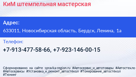 КиМ, штемпельная мастерская по адресу 633011, Новосибирская область, Бердск, Ленина, 1а в дальнейшем Организация, размещена в следующих категориях: