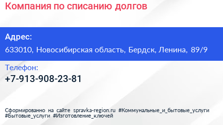 Компания по списанию долгов по адресу 633010, Новосибирская область, Бердск, Ленина, 89/9 в дальнейшем Организация, размещена в следующих категориях: