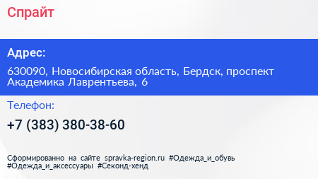 Спрайт по адресу 630090, Новосибирская область, Бердск, проспект Академика Лаврентьева, 6 в дальнейшем Организация, размещена в следующих категориях: