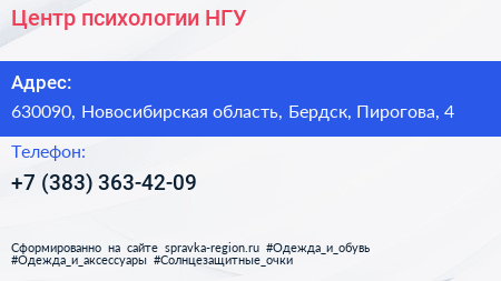 Центр психологии, НГУ по адресу 630090, Новосибирская область, Бердск, Пирогова, 4 в дальнейшем Организация, размещена в следующих категориях: