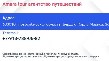 Amara tour, агентство путешествий по адресу 633010, Новосибирская область, Бердск, Карла Маркса, 36 в дальнейшем Организация, размещена в следующих категориях: