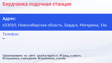 Бердчанка, лодочная станция по адресу 633010, Новосибирская область, Бердск, Мичурина, 14а в дальнейшем Организация, размещена в следующих категориях: