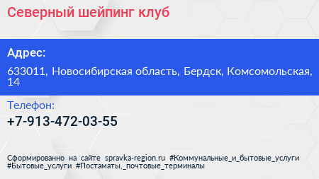 Северный, шейпинг-клуб по адресу 633011, Новосибирская область, Бердск, Комсомольская, 14 в дальнейшем Организация, размещена в следующих категориях: