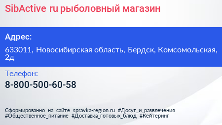SibActive.ru, рыболовный магазин по адресу 633011, Новосибирская область, Бердск, Комсомольская, 2д в дальнейшем Организация, размещена в следующих категориях: