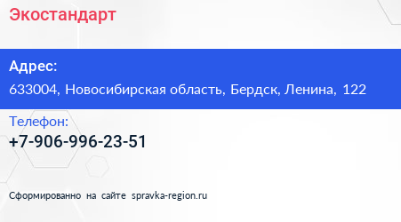 Экостандарт по адресу 633004, Новосибирская область, Бердск, Ленина, 122 в дальнейшем Организация, размещена в следующих категориях: