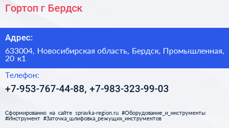 Гортоп, г. Бердск по адресу 633004, Новосибирская область, Бердск, Промышленная, 20 к1 в дальнейшем Организация, размещена в следующих категориях:
