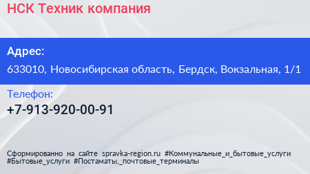 НСК-Техник, компания по адресу 633010, Новосибирская область, Бердск, Вокзальная, 1/1 в дальнейшем Организация, размещена в следующих категориях: