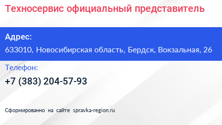 Техносервис, официальный представитель по адресу 633010, Новосибирская область, Бердск, Вокзальная, 26 в дальнейшем Организация, размещена в следующих категориях: