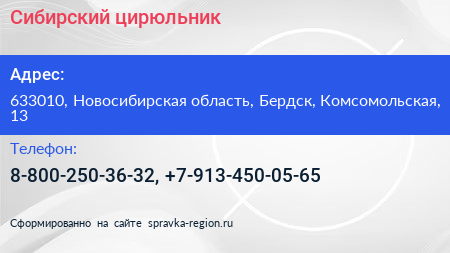 Сибирский цирюльник по адресу 633010, Новосибирская область, Бердск, Комсомольская, 13 в дальнейшем Организация, размещена в следующих категориях: