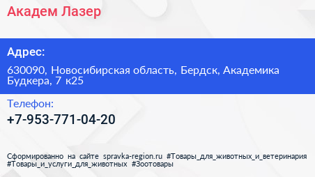 Академ Лазер по адресу 630090, Новосибирская область, Бердск, Академика Будкера, 7 к25 в дальнейшем Организация, размещена в следующих категориях: