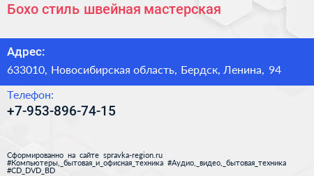 Бохо стиль, швейная мастерская по адресу 633010, Новосибирская область, Бердск, Ленина, 94 в дальнейшем Организация, размещена в следующих категориях: