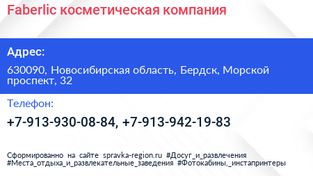 Faberlic, косметическая компания по адресу 630090, Новосибирская область, Бердск, Морской проспект, 32 в дальнейшем Организация, размещена в следующих категориях: