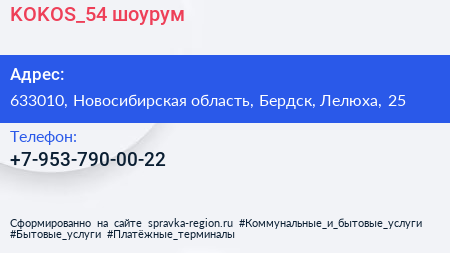 KOKOS_54, шоурум по адресу 633010, Новосибирская область, Бердск, Лелюха, 25 в дальнейшем Организация, размещена в следующих категориях: