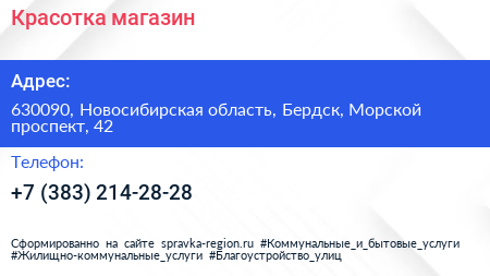 Красотка, магазин по адресу 630090, Новосибирская область, Бердск, Морской проспект, 42 в дальнейшем Организация, размещена в следующих категориях: