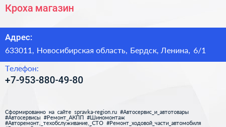 Кроха, магазин по адресу 633011, Новосибирская область, Бердск, Ленина, 6/1 в дальнейшем Организация, размещена в следующих категориях: