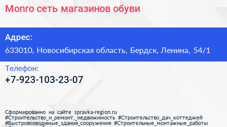 Monro, сеть магазинов обуви по адресу 633010, Новосибирская область, Бердск, Ленина, 54/1 в дальнейшем Организация, размещена в следующих категориях: