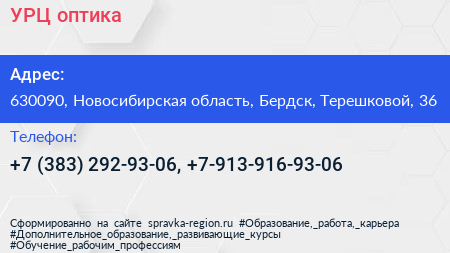УРЦ, оптика по адресу 630090, Новосибирская область, Бердск, Терешковой, 36 в дальнейшем Организация, размещена в следующих категориях: