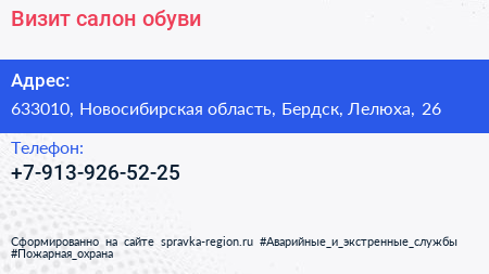 Визит, салон обуви по адресу 633010, Новосибирская область, Бердск, Лелюха, 26 в дальнейшем Организация, размещена в следующих категориях: