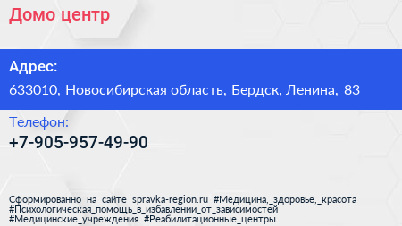 Домо центр по адресу 633010, Новосибирская область, Бердск, Ленина, 83 в дальнейшем Организация, размещена в следующих категориях:
