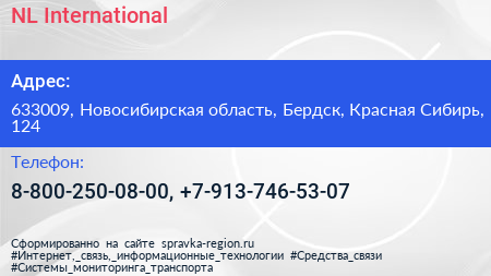 NL International по адресу 633009, Новосибирская область, Бердск, Красная Сибирь, 124 в дальнейшем Организация, размещена в следующих категориях: