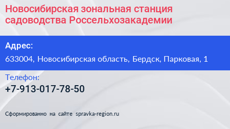 Новосибирская зональная станция садоводства Россельхозакадемии по адресу 633004, Новосибирская область, Бердск, Парковая, 1 в дальнейшем Организация, размещена в следующих категориях: