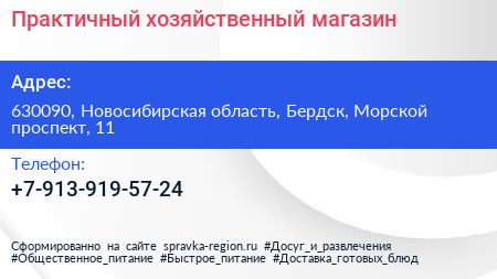 Практичный, хозяйственный магазин по адресу 630090, Новосибирская область, Бердск, Морской проспект, 11 в дальнейшем Организация, размещена в следующих категориях:
