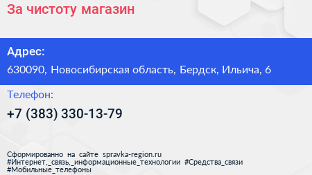 За чистоту, магазин по адресу 630090, Новосибирская область, Бердск, Ильича, 6 в дальнейшем Организация, размещена в следующих категориях: