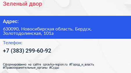 Зеленый двор по адресу 630090, Новосибирская область, Бердск, Золотодолинская, 101а в дальнейшем Организация, размещена в следующих категориях: