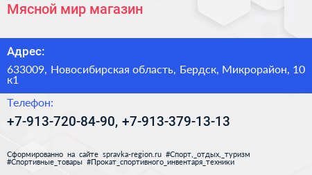 Мясной мир, магазин по адресу 633009, Новосибирская область, Бердск, Микрорайон, 10 к1 в дальнейшем Организация, размещена в следующих категориях: