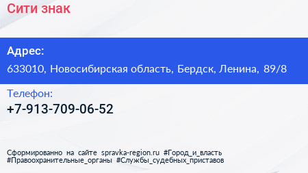 Сити-знак по адресу 633010, Новосибирская область, Бердск, Ленина, 89/8 в дальнейшем Организация, размещена в следующих категориях: