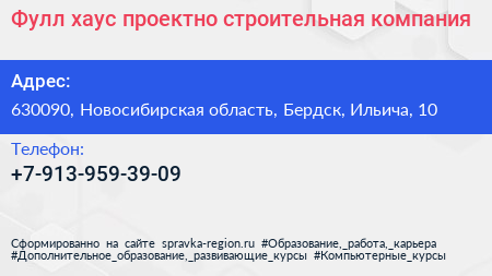 Фулл хаус, проектно-строительная компания по адресу 630090, Новосибирская область, Бердск, Ильича, 10 в дальнейшем Организация, размещена в следующих категориях: