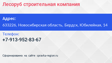 Лесоруб, строительная компания по адресу 633226, Новосибирская область, Бердск, Юбилейная, 14 в дальнейшем Организация, размещена в следующих категориях: