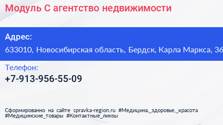 Модуль С, агентство недвижимости по адресу 633010, Новосибирская область, Бердск, Карла Маркса, 36 в дальнейшем Организация, размещена в следующих категориях:
