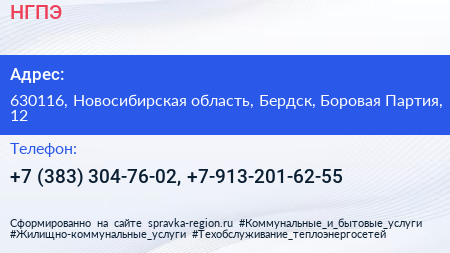 НГПЭ по адресу 630116, Новосибирская область, Бердск, Боровая Партия, 12 в дальнейшем Организация, размещена в следующих категориях: