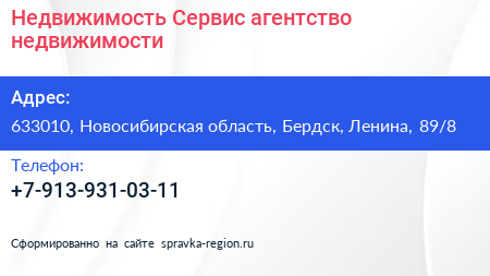 Недвижимость-Сервис, агентство недвижимости по адресу 633010, Новосибирская область, Бердск, Ленина, 89/8 в дальнейшем Организация, размещена в следующих категориях: